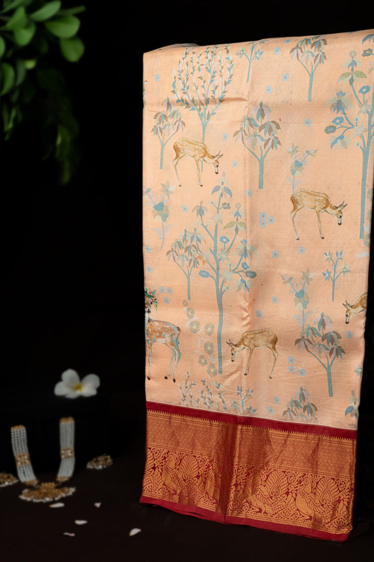 Varamahalakshmi Cream & Maroon Fancy Digital Print Saree