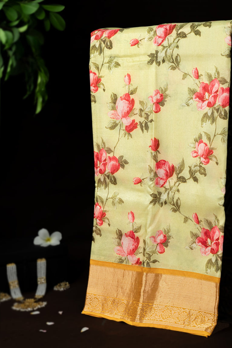 Varamahalakshmi Cream & Mustard Fancy Digital Print Saree