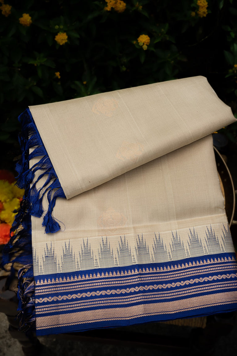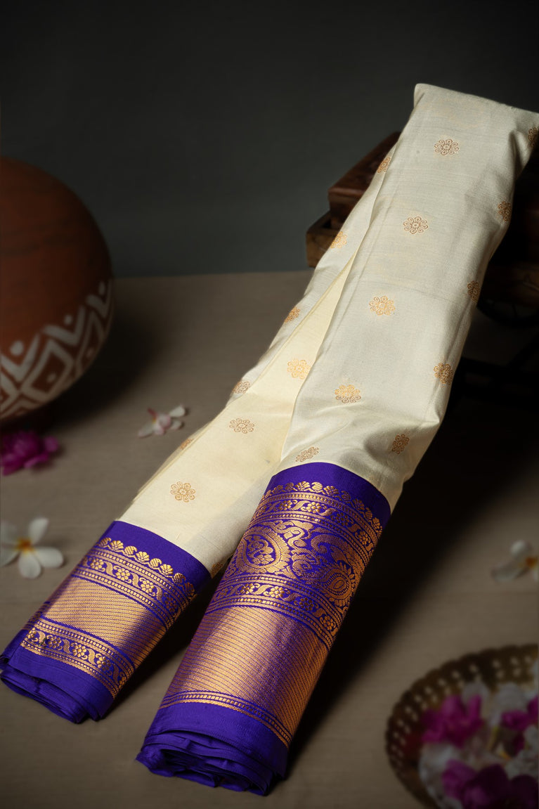 Varamahalakshmi Cream & Royal Blue Gadwal Buttis Saree