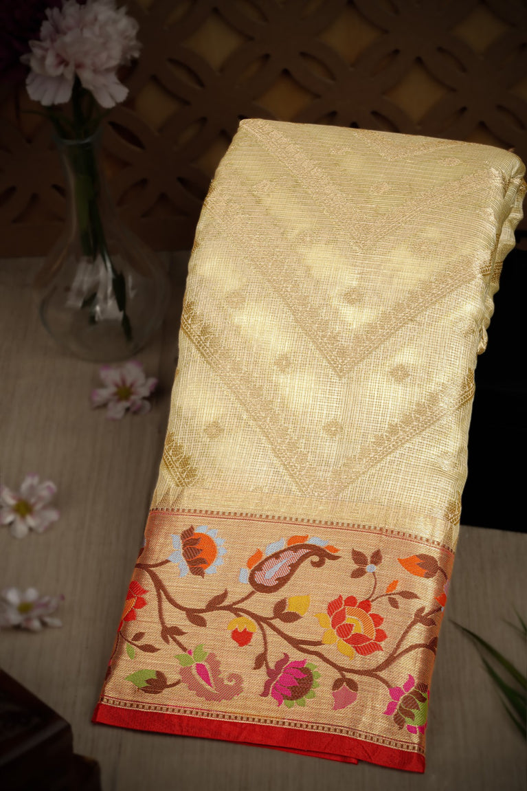 Varamahalakshmi Cream & Red Fancy Floral Jaal Saree