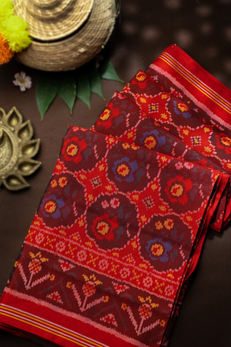 Varamahalakshmi Maroon & Multi-Colour Patola Abstract Saree
