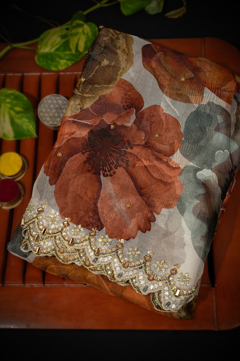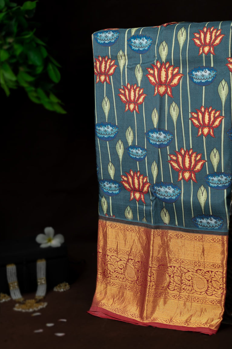 Varamahalakshmi Multi-Colour & Maroon Fancy Digital Print Saree