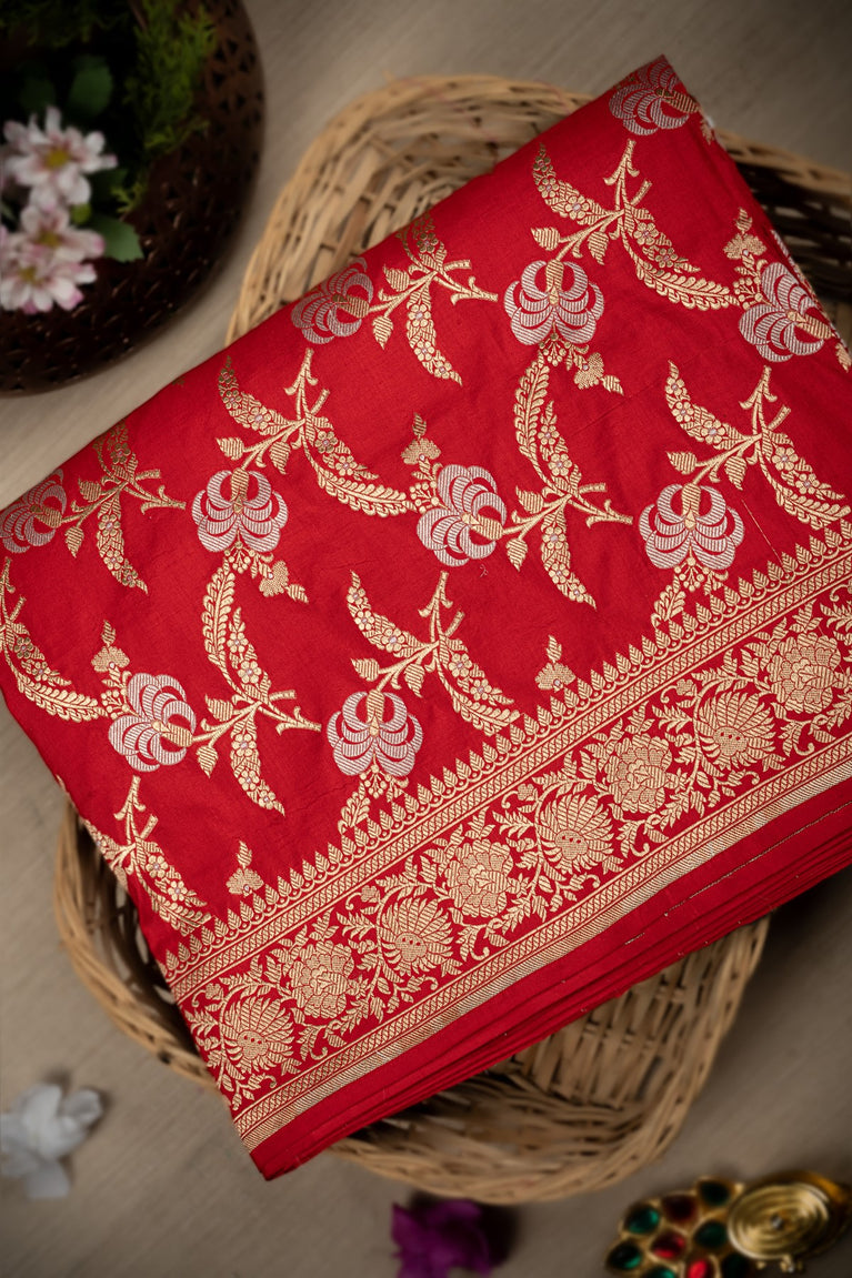 Varamahalakshmi Maroon & Gold Banarasi Florals Saree