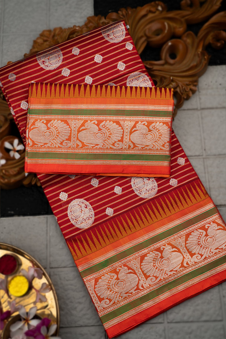Varamahalakshmi Maroon & Orange Uppada Buttis Saree
