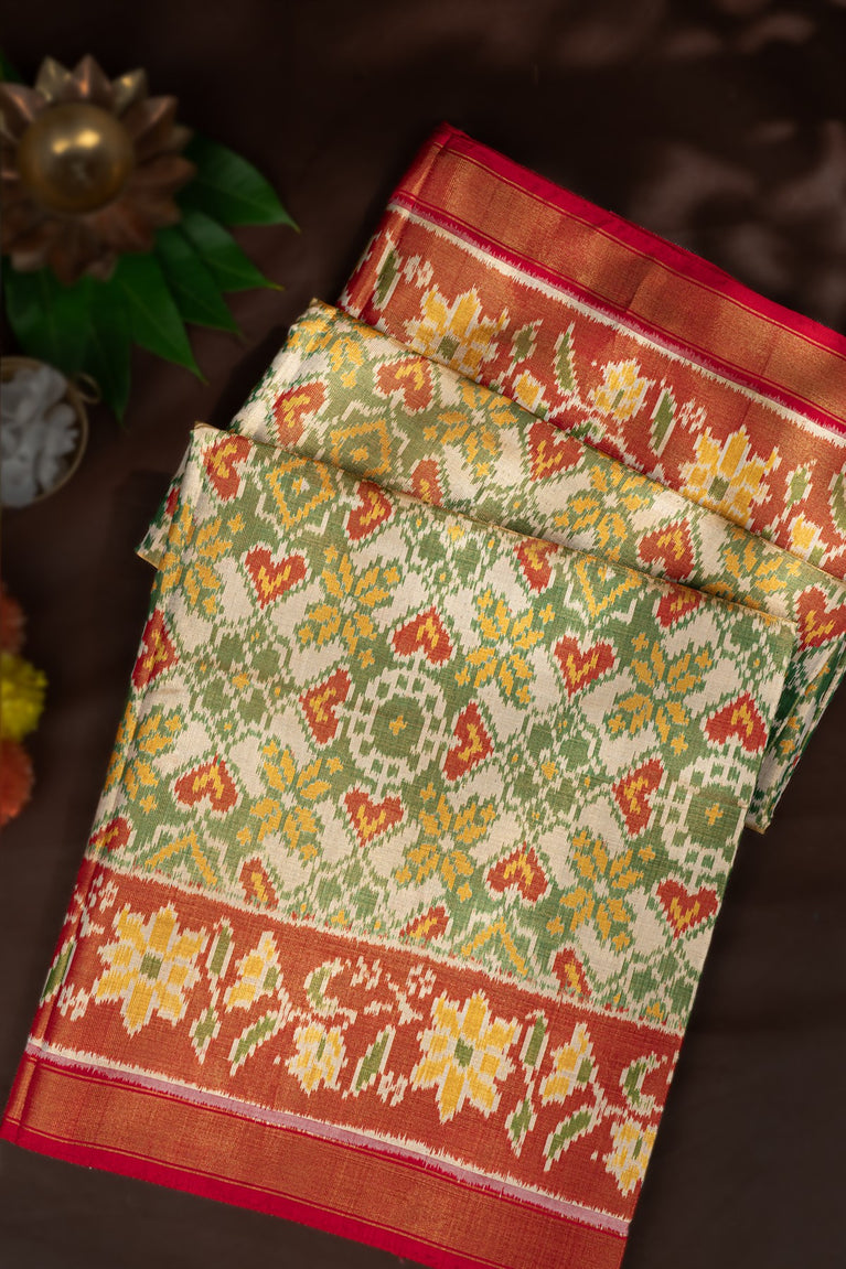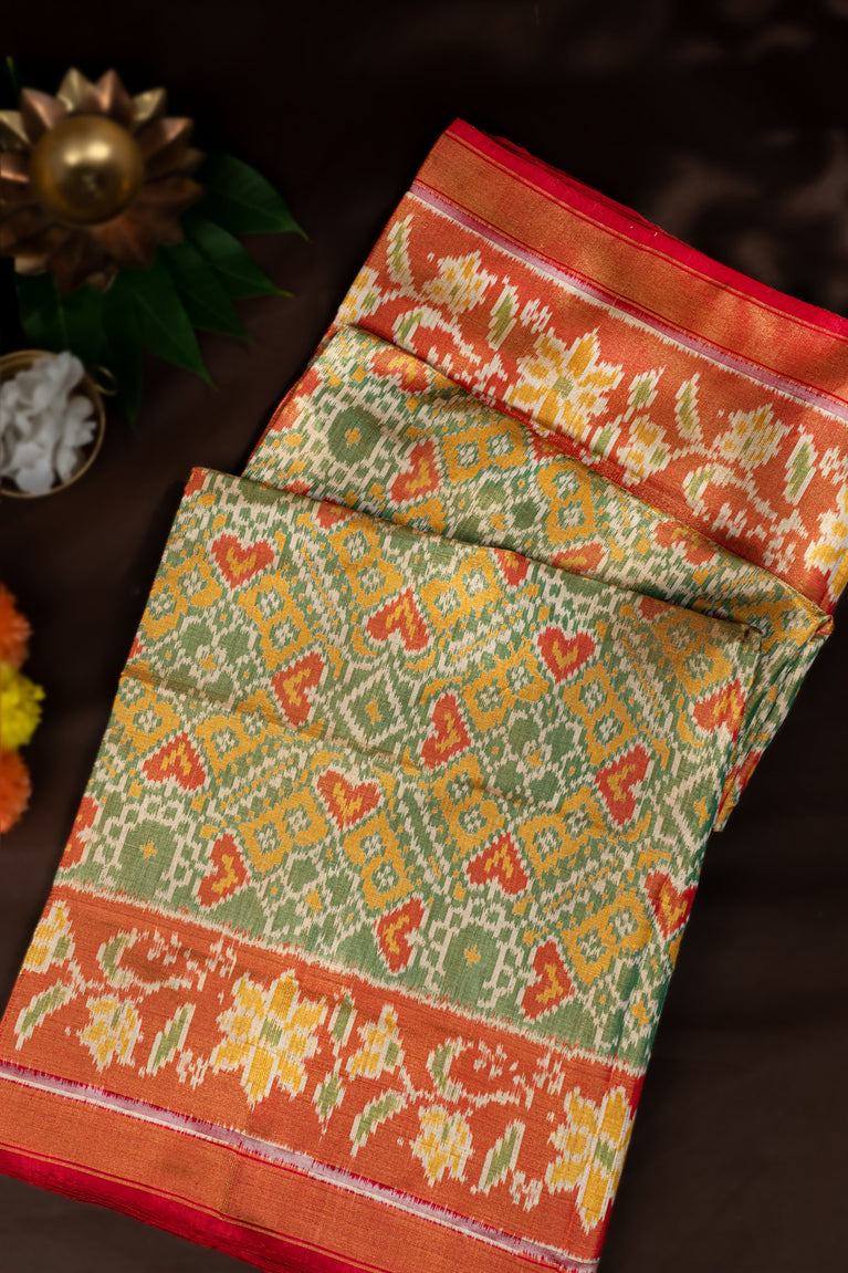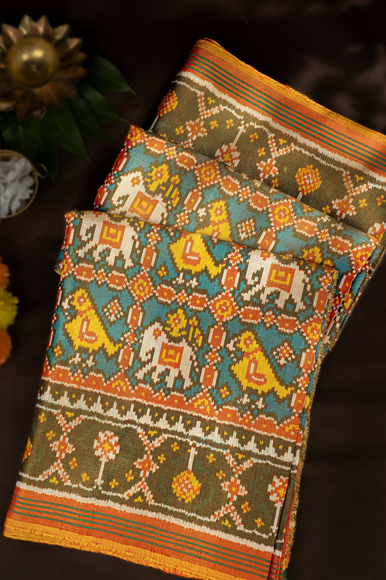 Varamahalakshmi Mehendi Green & Orange Patola Ikat Saree