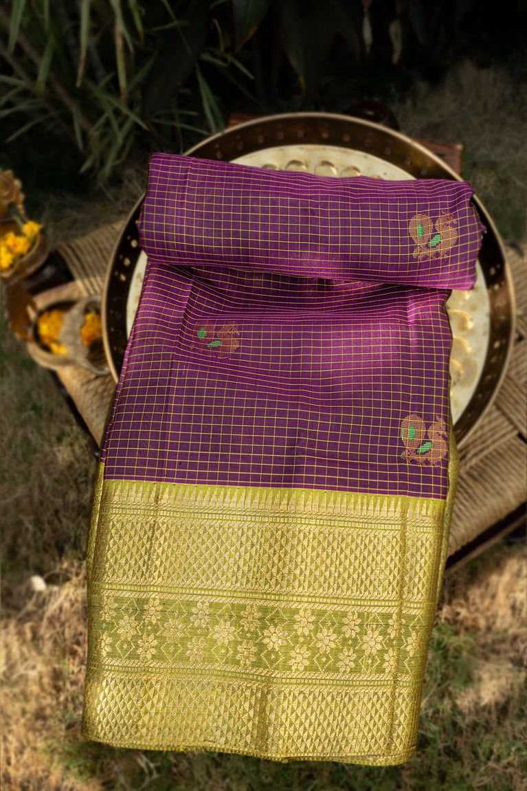 Varamahalakshmi Purple & Green Mysore Checks Saree