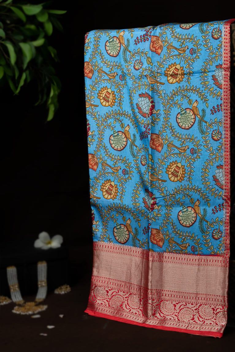 Varamahalakshmi Rama Blue & Red Fancy Digital Print Saree