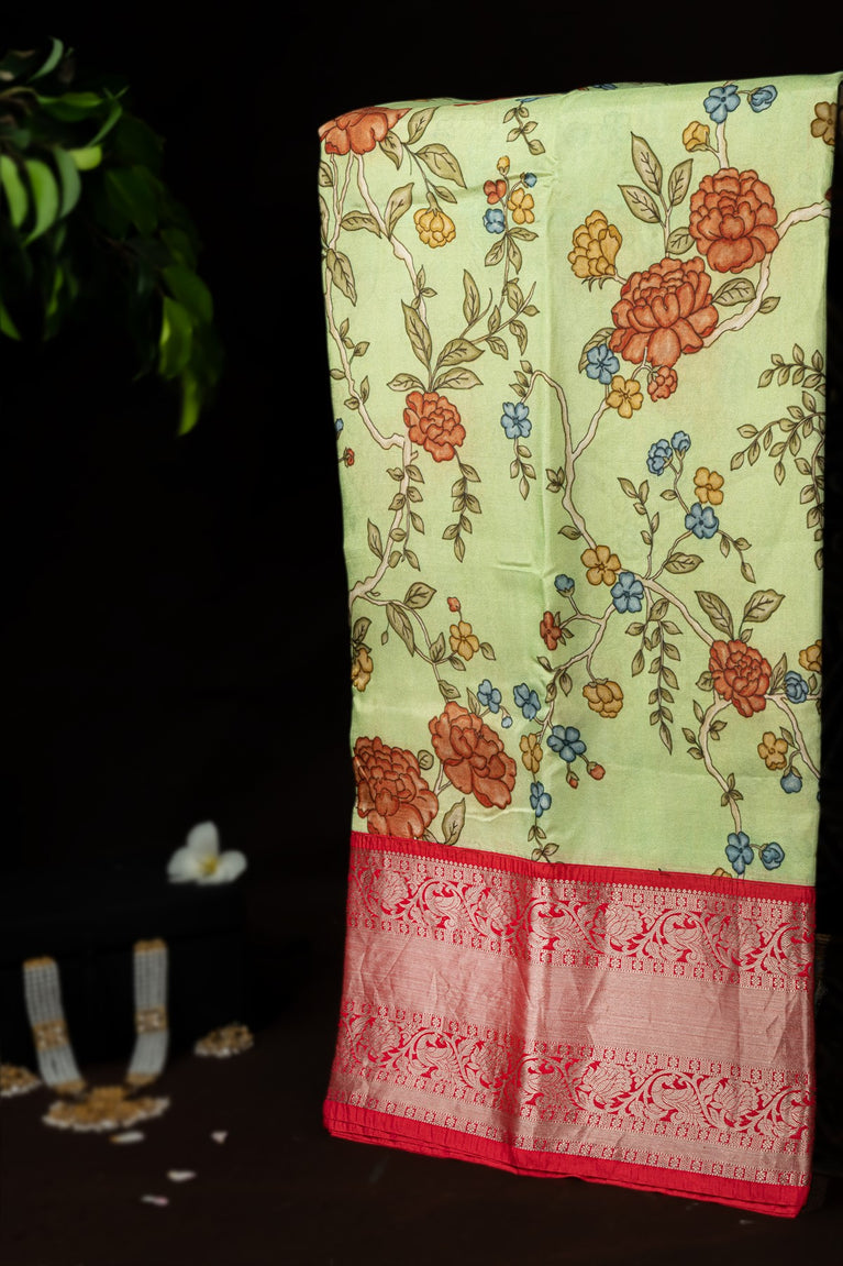 Varamahalakshmi Pista Green & Red Fancy Digital Print Saree