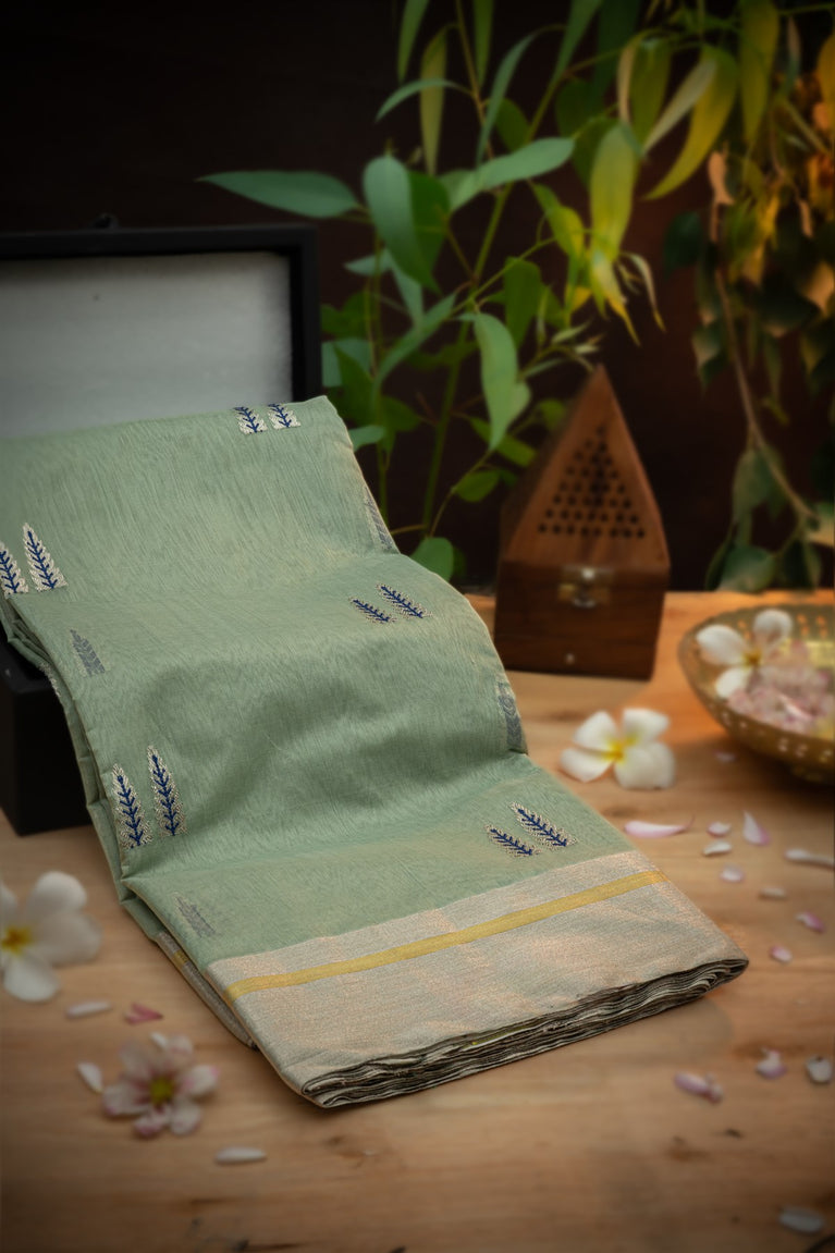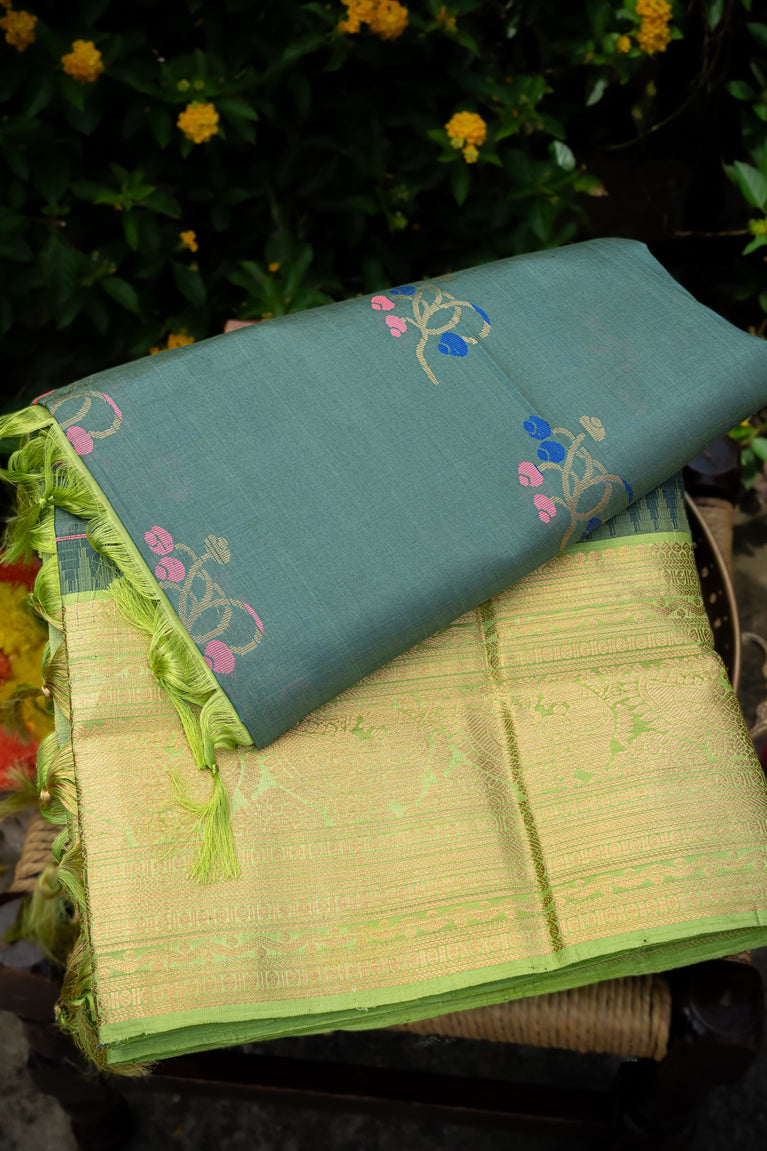 Varamahalakshmi Pista Green and Grey & Mehendi Green Kuppadam Motifs Saree
