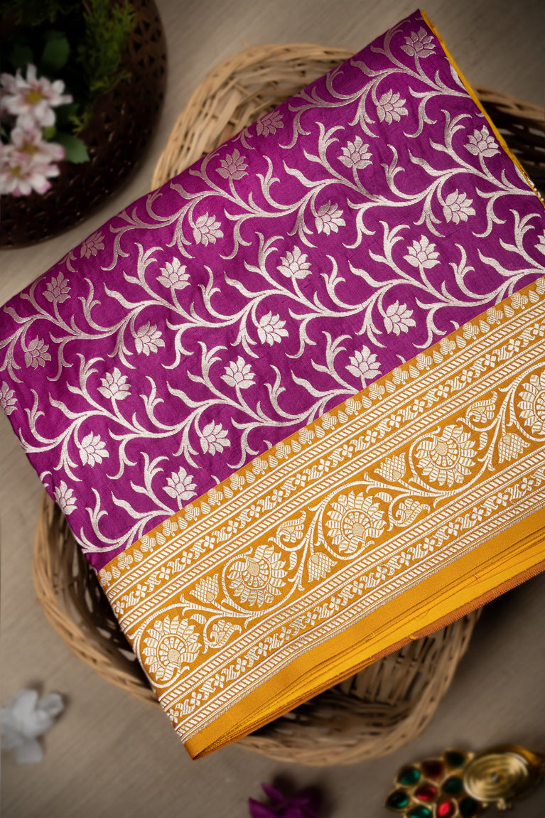 Varamahalakshmi Purple & Mustard Banarasi Jaal Saree