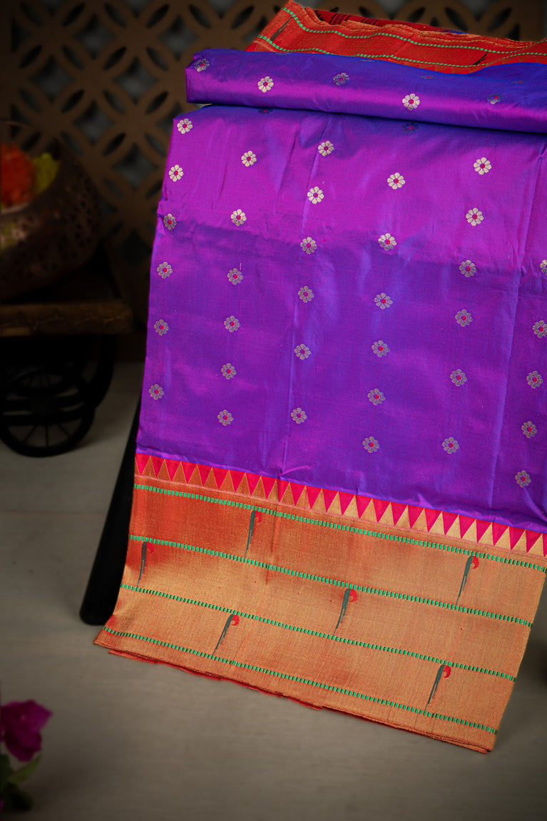 Varamahalakshmi Purple & Gold and Red Paithani Buttis Saree