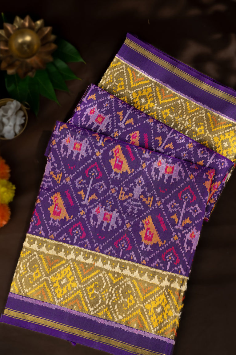 Varamahalakshmi Purple & Olive Green Patola Ikat Saree