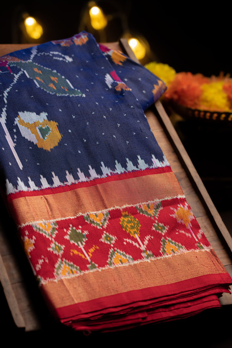 Varamahalakshmi Red & Teal Blue Ikat Ikat Saree