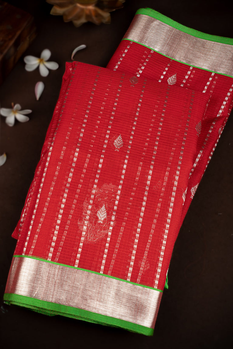 Varamahalakshmi Red & Silver Zari Kota Buttis Saree