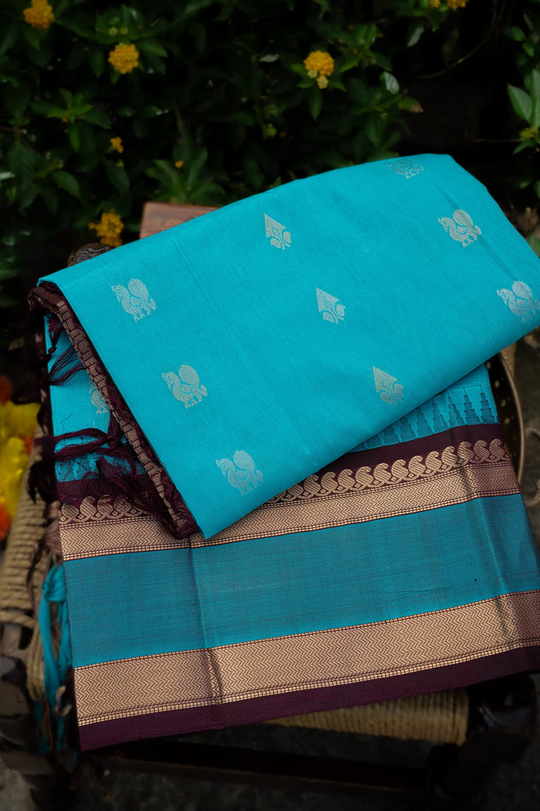 Varamahalakshmi Sea Blue & Brown Kuppadam Buttis Saree