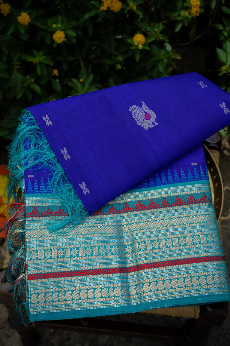 Varamahalakshmi Royal Blue & Teal Kuppadam Motifs Saree
