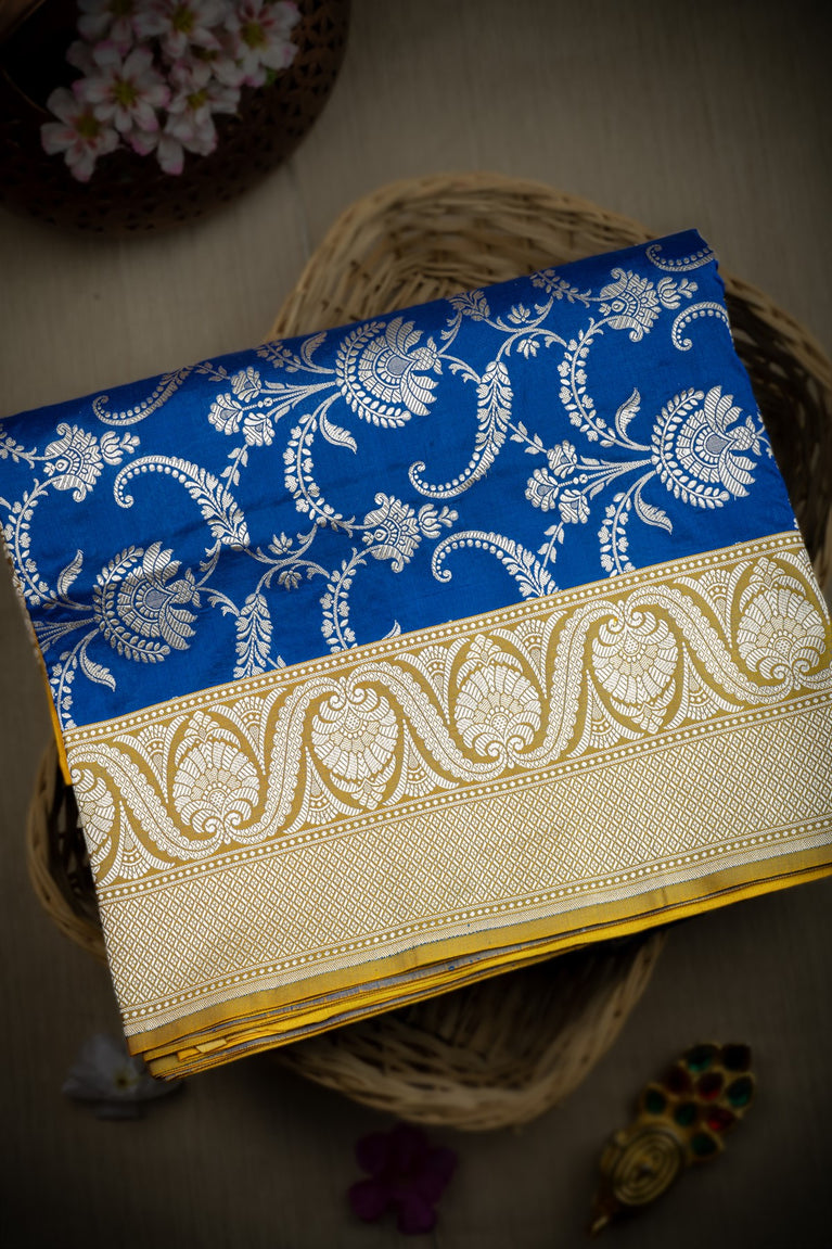 Varamahalakshmi Royal Blue & Yellow Banarasi Jaal Saree