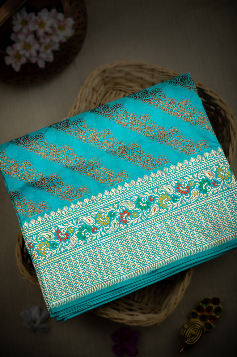 Varamahalakshmi Sea Blue & Copper Banarasi Jaal Saree