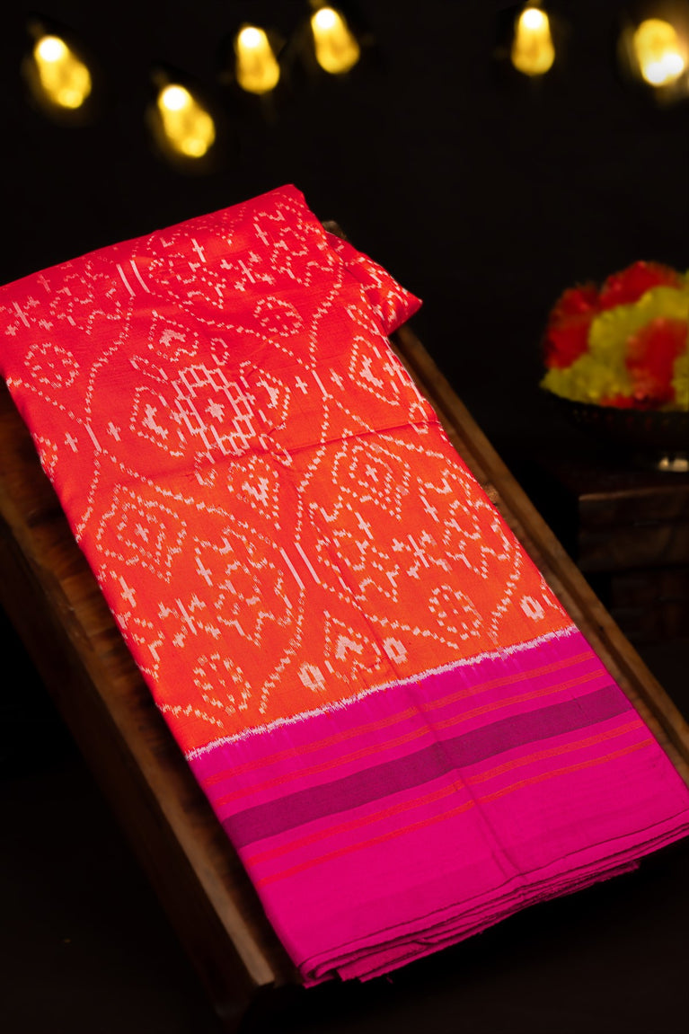 Varamahalakshmi Saffron & Magenta Ikat Ikat Saree