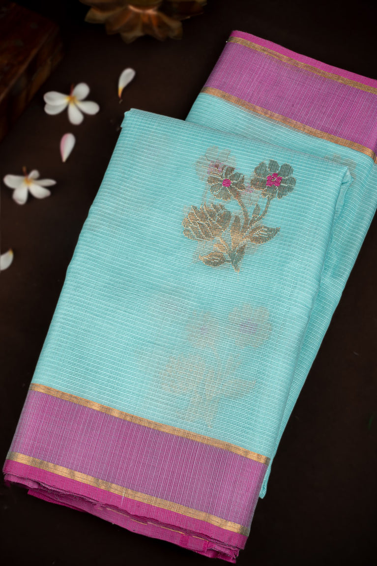 Varamahalakshmi Sky Blue & Pink Zari Kota Motifs Saree