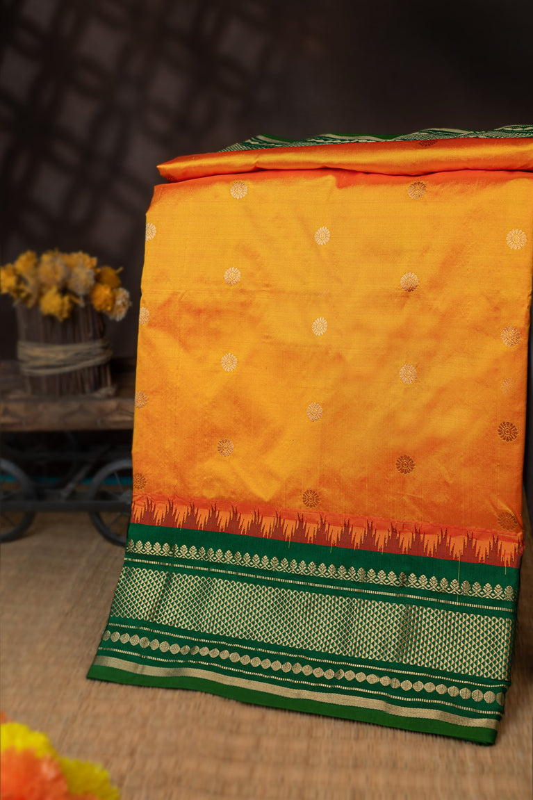 Varamahalakshmi Tangy Orange & Green Paithani Buttis Saree
