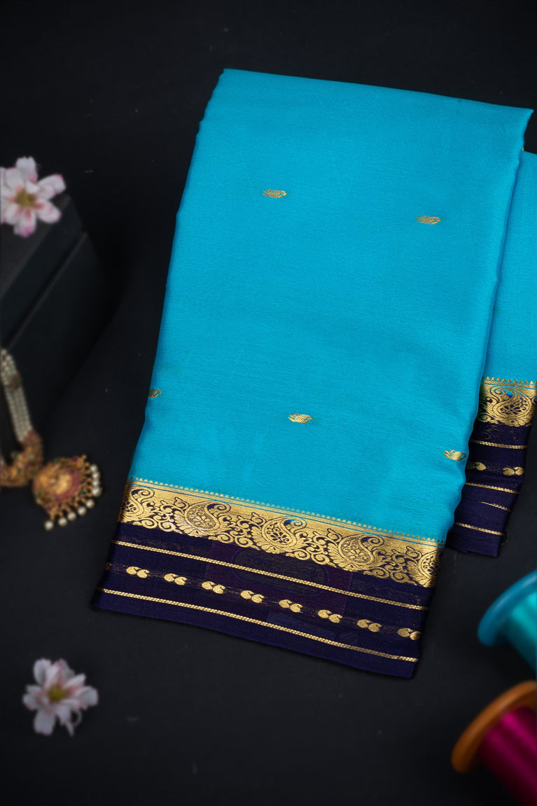 Varamahalakshmi Sky Blue & Navy Blue Mysore Buttis Saree
