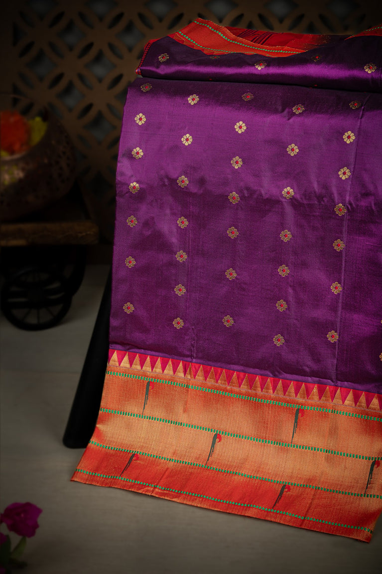 Varamahalakshmi Wine & Gold and Red Paithani Buttis Saree