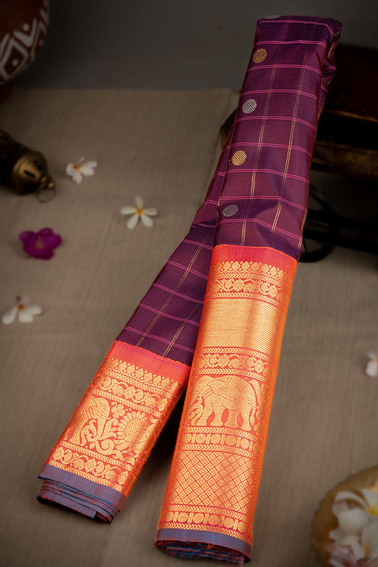 Varamahalakshmi Violet & Blush Pink Kancheepuram Checks Saree