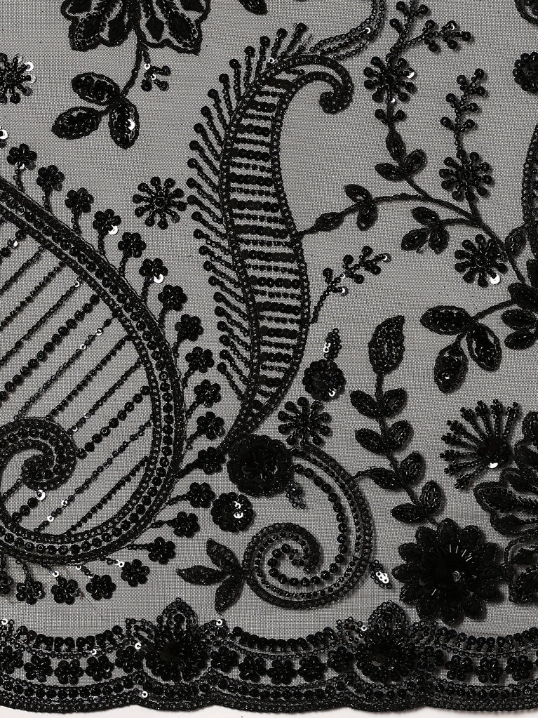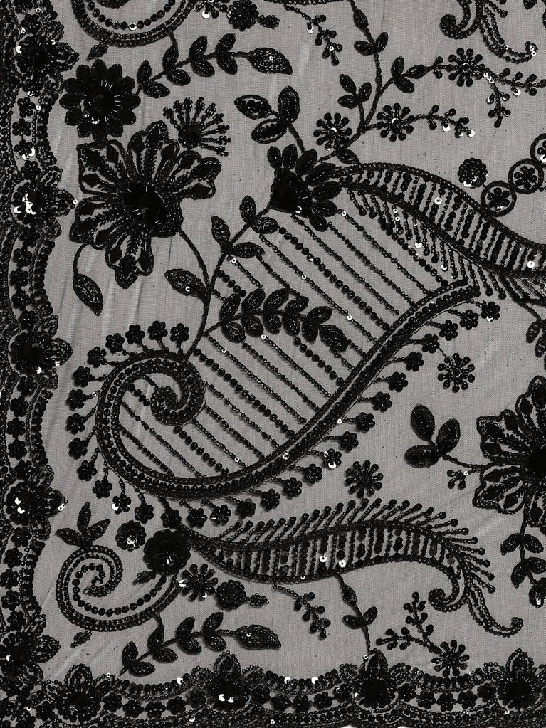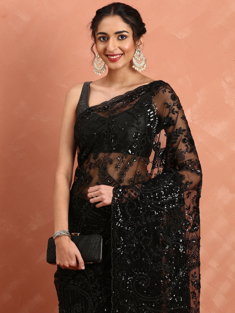 Elevate your elegance with this stunning black net saree featuring intricate heavy hand embroidery embellished with shimmering sequins. Its delicate craftsmanship highlights a luxurious texture, perfect for making a bold statement at any special occasion. Experience the blend of traditional artistry and modern allure that ensures you stand out with grace and sophistication.
