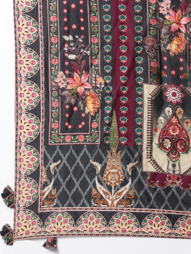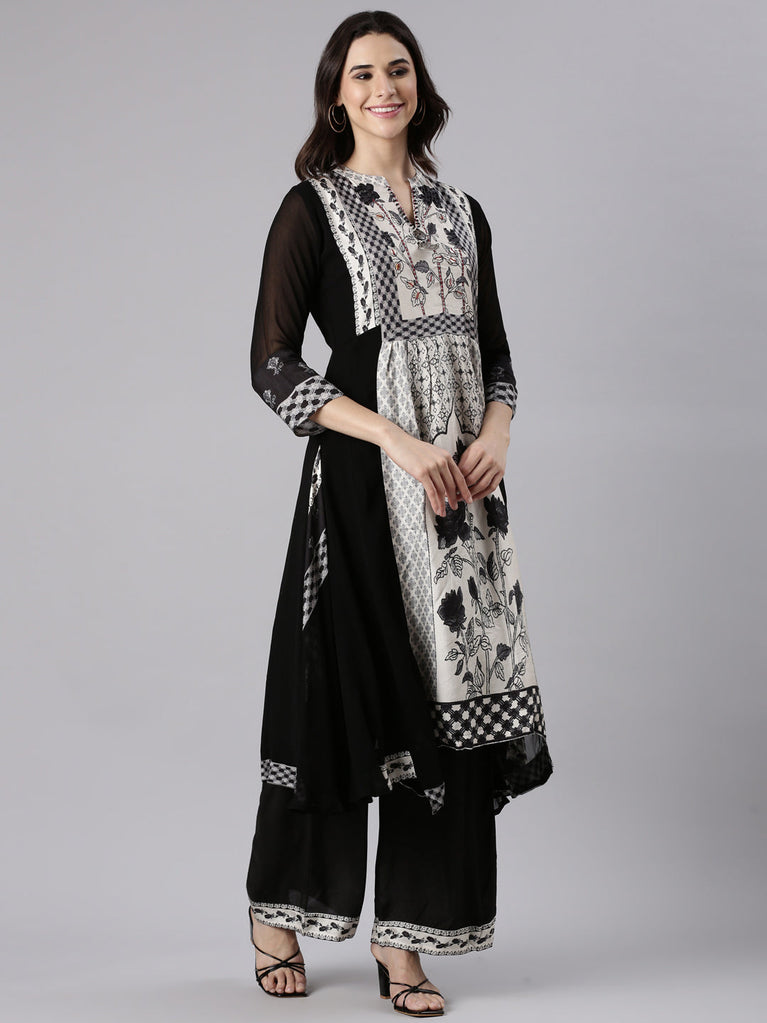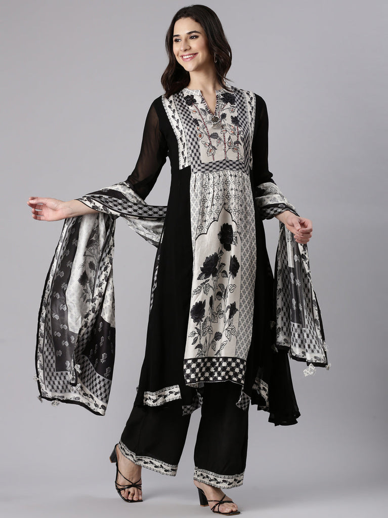 Elevate your wardrobe with this Black Georgette Printed Three Piece Set, featuring a graceful blend of comfort and style. The lightweight georgette fabric drapes beautifully, while the intricate prints add a refined touch. Perfect for formal events or elegant gatherings, this set offers a polished look with effortless charm.