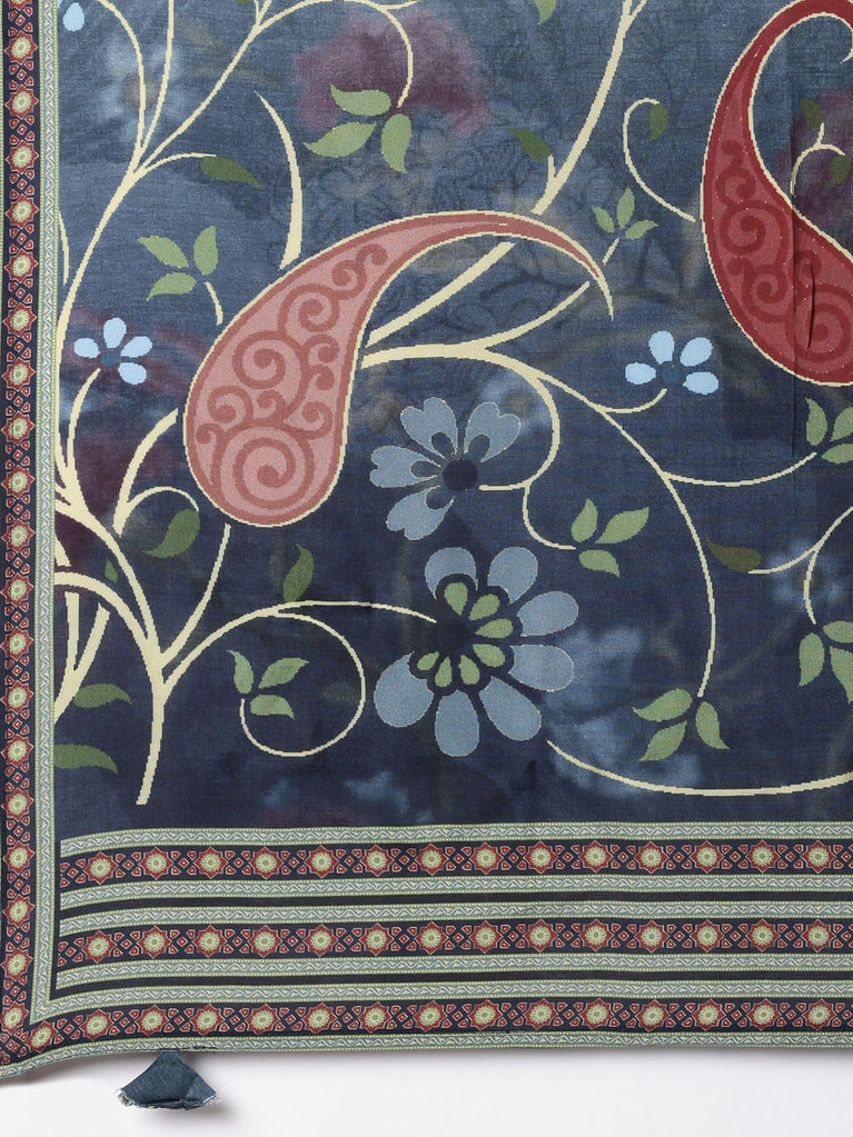 Elevate your wardrobe with this Blue Muslin Printed A-Line Three Piece Set, crafted for effortless elegance. The breathable muslin fabric ensures comfort, while the delicate print adds a subtle charm. Its A-line silhouette flatters every figure, making it perfect for both casual and formal occasions. This versatile set combines style and grace, allowing you to make a sophisticated statement with ease.