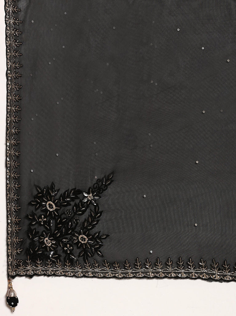 Black Organza saree cut Dana hand embroidery with heavy ready made blouse