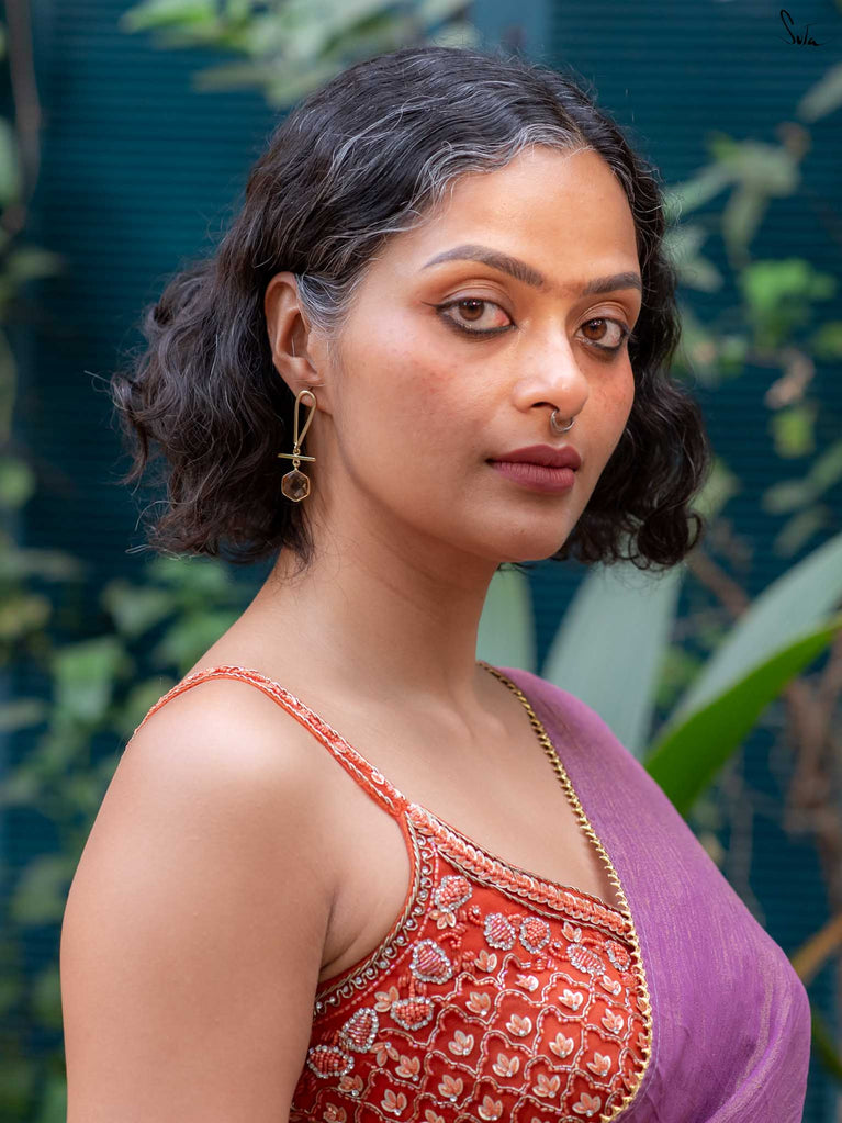 Blush is a sophisticated Orange blouse from the Rangrez collection, crafted to blend heritage artistry with modern elegance. Made in soft cotton muslin, it features traditional Bandhani tie-dye patterns and 1/4th sleeves with a classic collar neck. The gold lace detailing on the sleeves and neckline adds a subtle festive shimmer, making Blush a perfect companion for Rangrez sarees or as a standalone statement for celebrations.