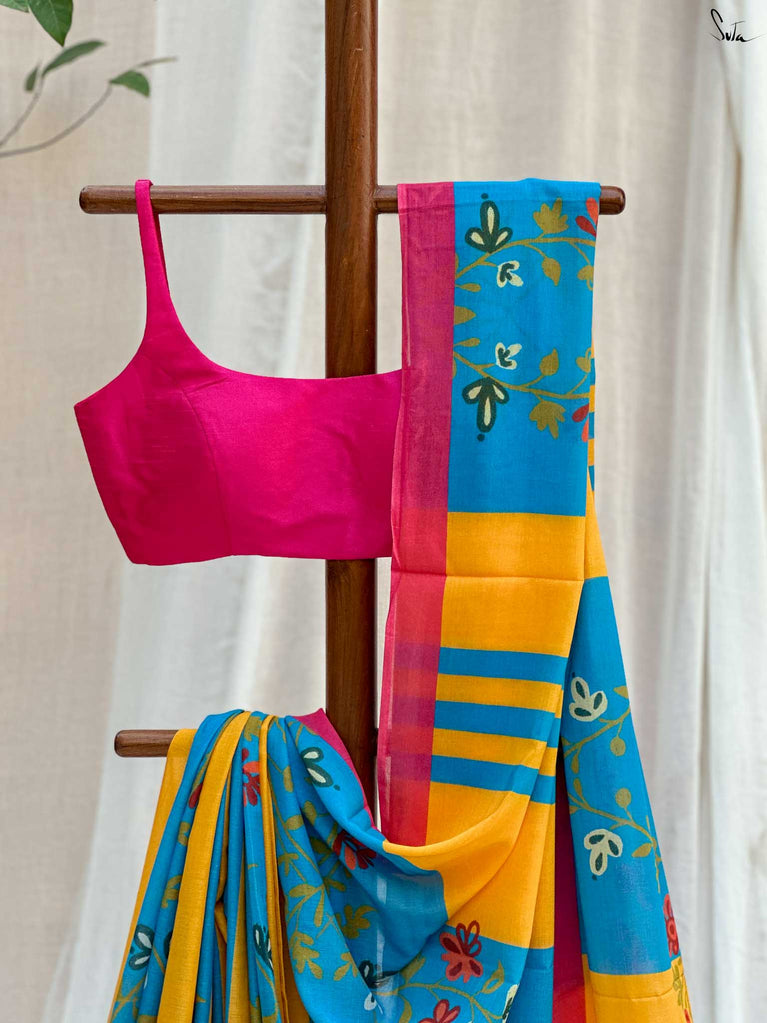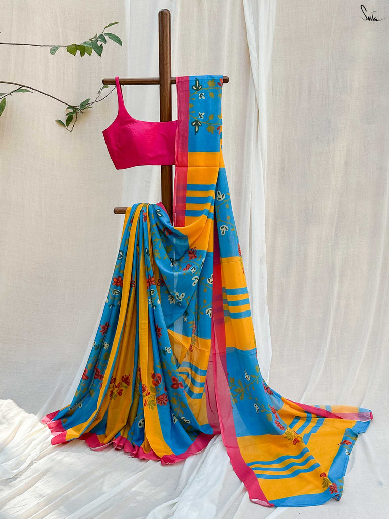 Note: Our mul sarees are slightly transparent, it’s the nature of the fabric and part of its soft, airy charm.
