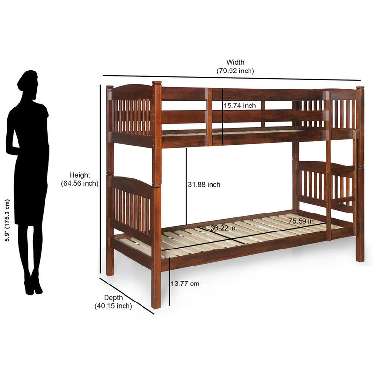 Dom Solid Wood Bunk Bed (Cappuccino)