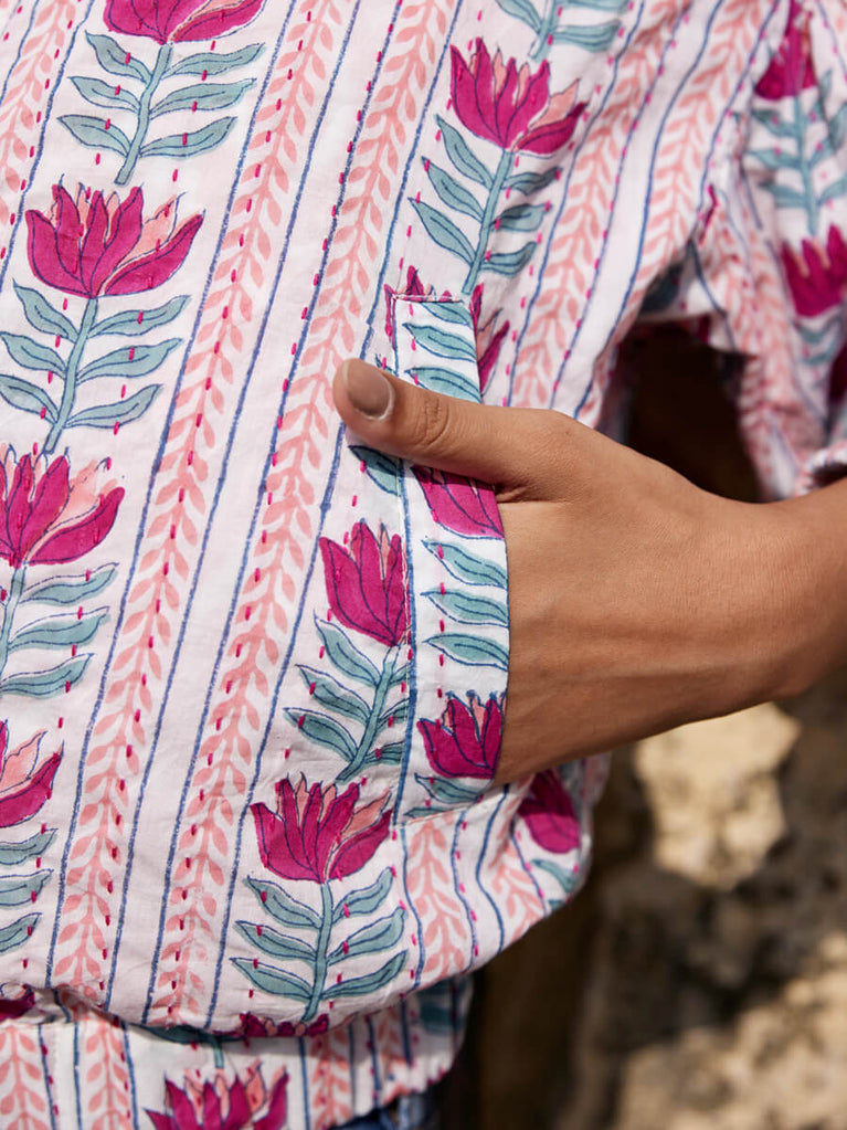 Jhankar Organic Cotton Shirt Kurta with Roll Up Sleeves