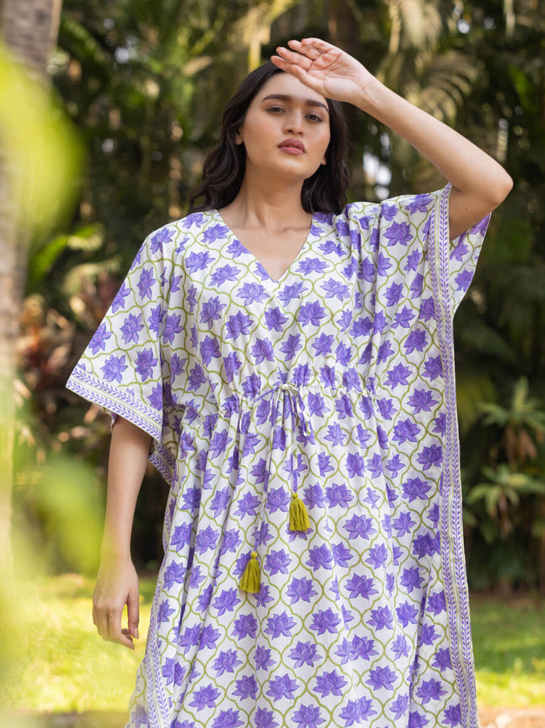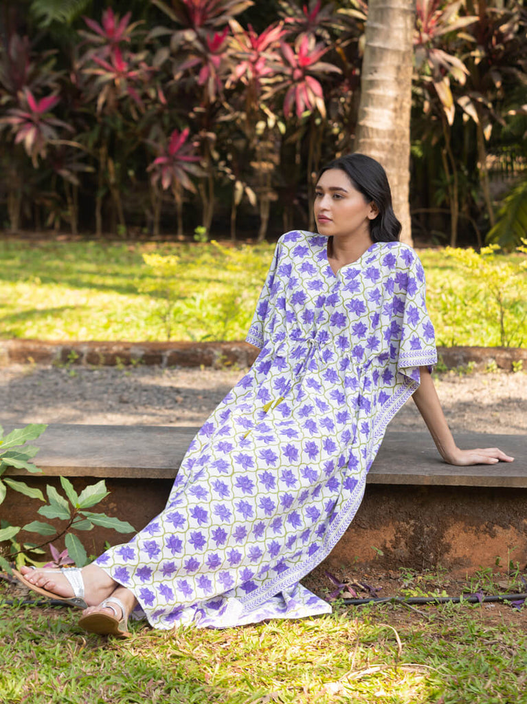 Kumudini Block Printed Cotton Kaftan