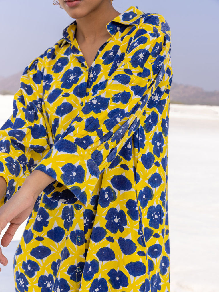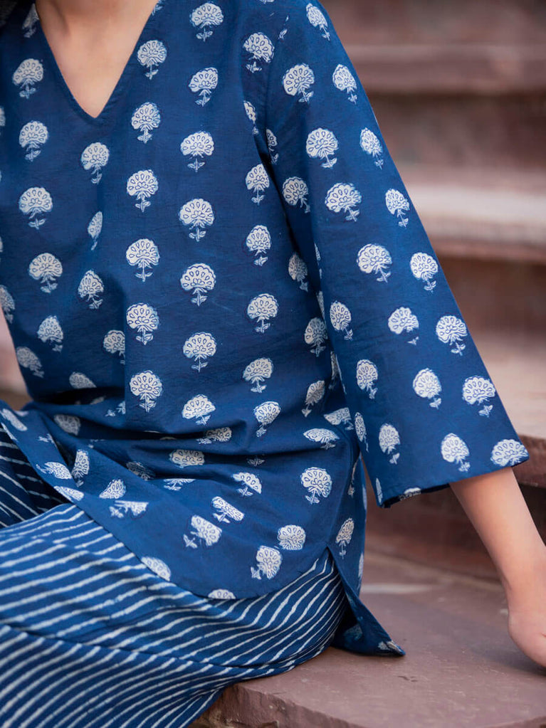 Neela Indigo Sleeveless Cotton Pintuck Dress