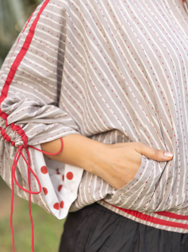 Nomad Kantha Embroidered Block Printed Bomber Jacket