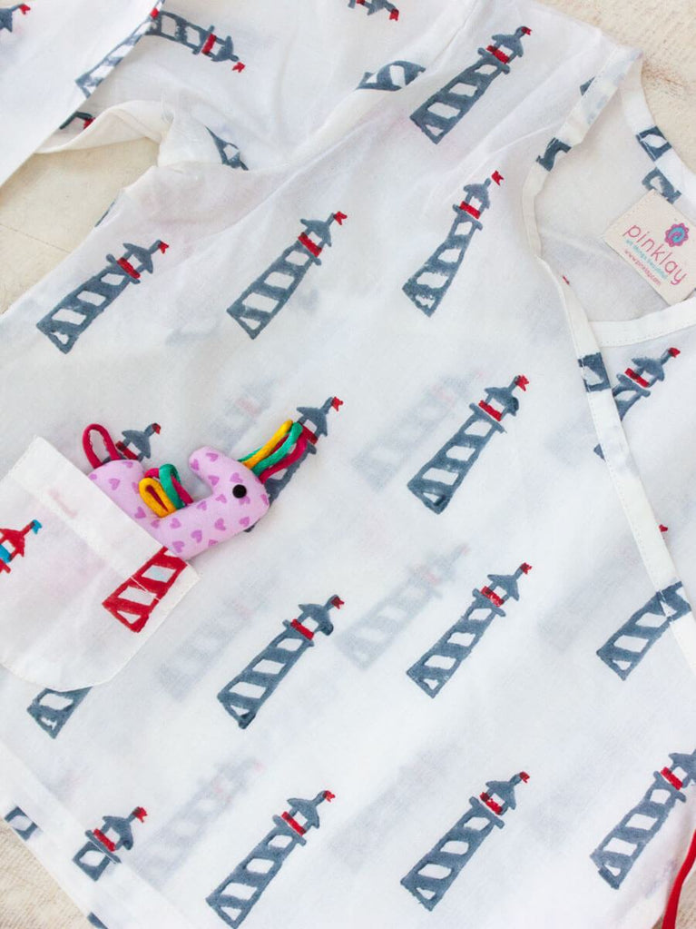 Ocean Breeze Organic Cotton Block Printed Angrakha Set