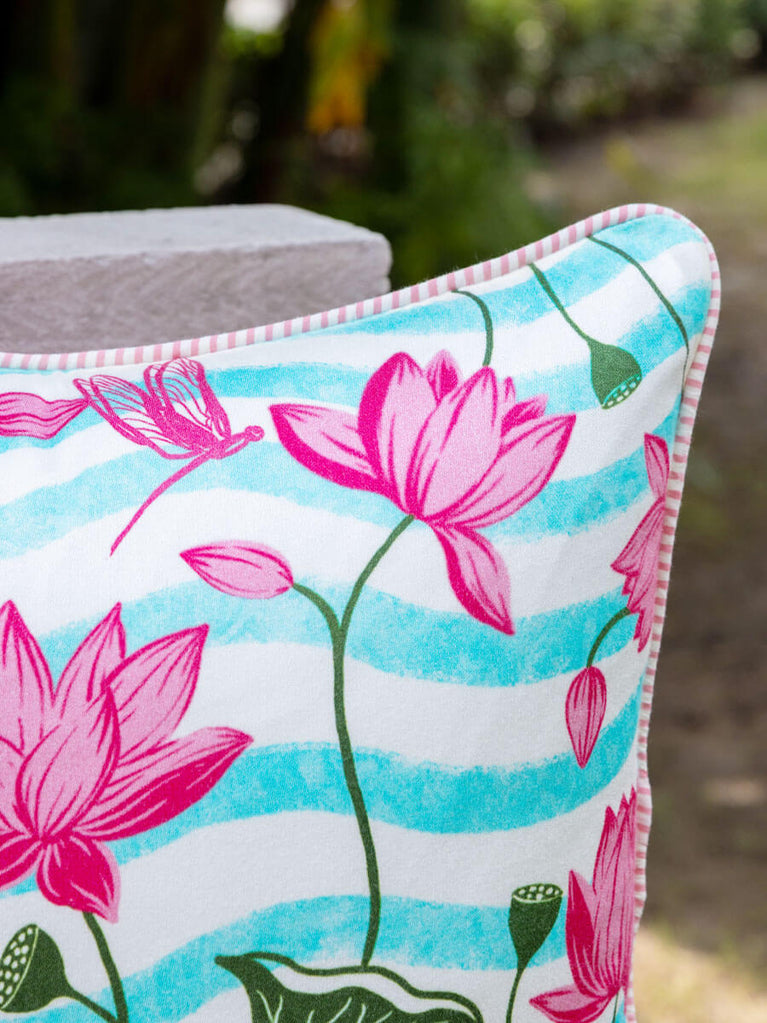 Primrose Block Printed Cotton Cushion Cover - 16 Inch