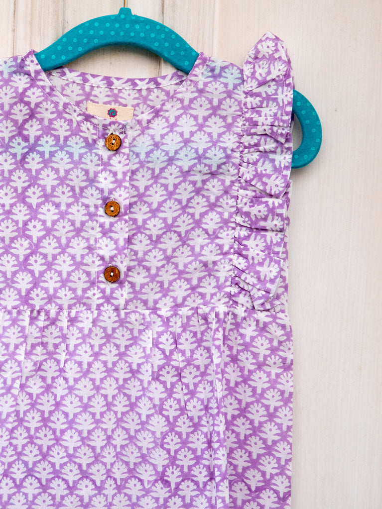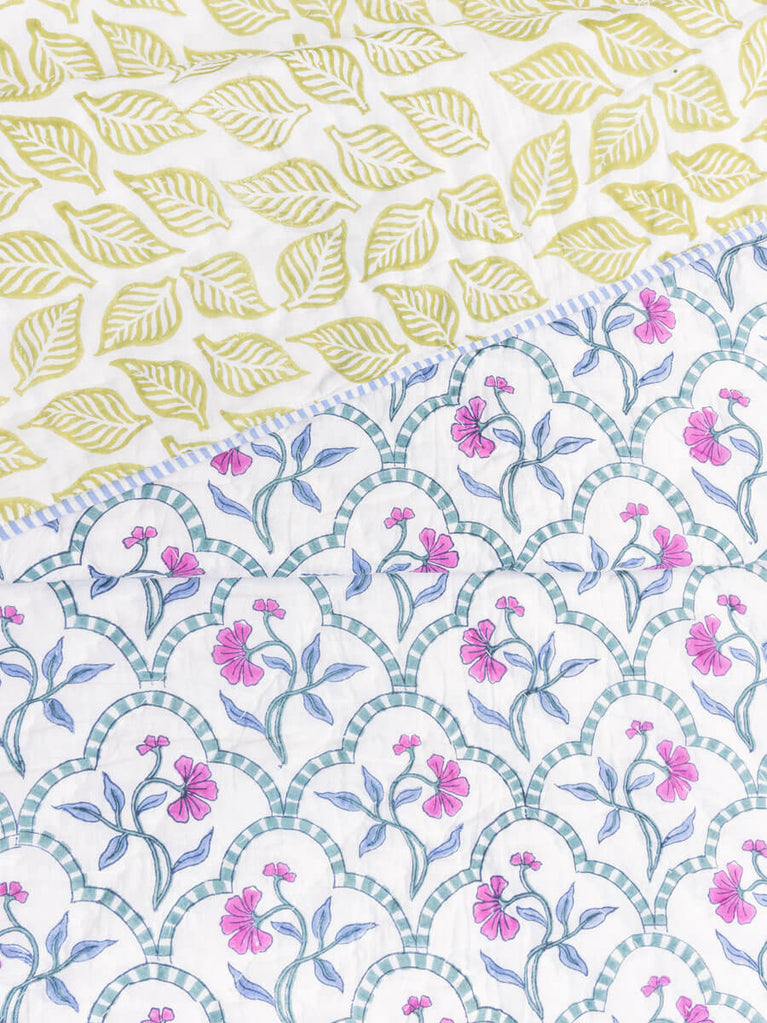 Purple Lotus Hand Block Printed Cotton Bed Sheet