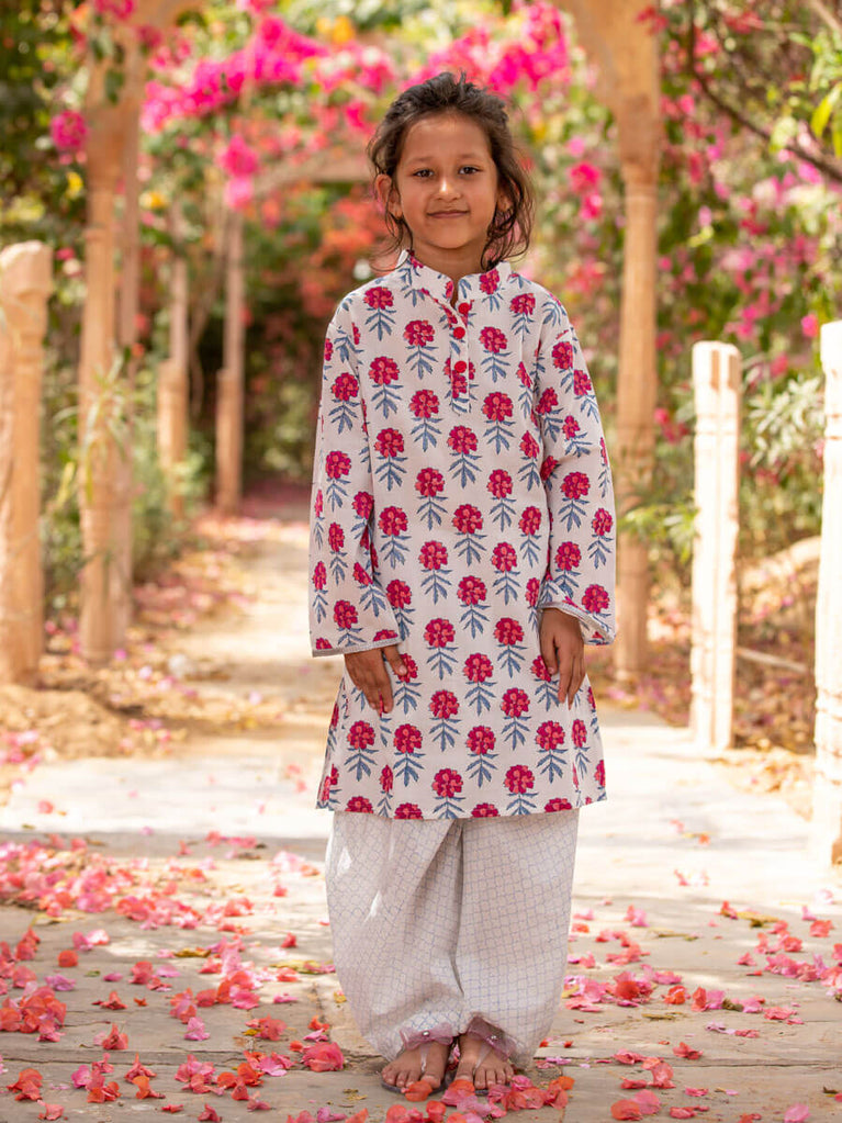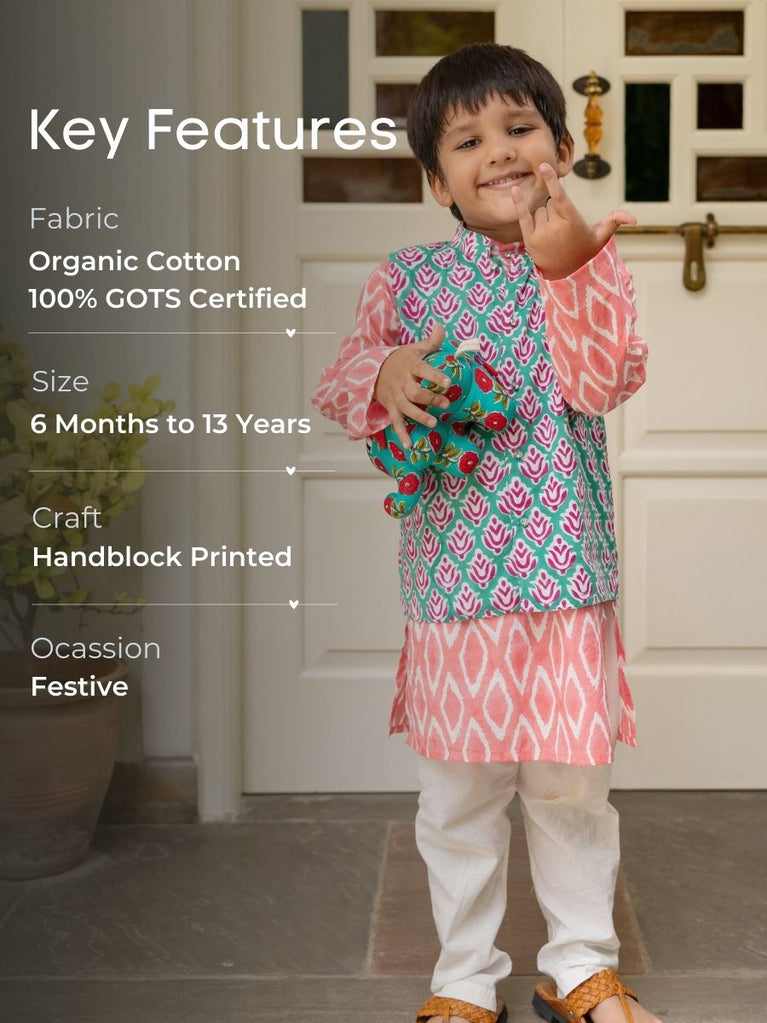 Set of 3 - Anant Organic Cotton Block Printed Long Kurta with Jacket