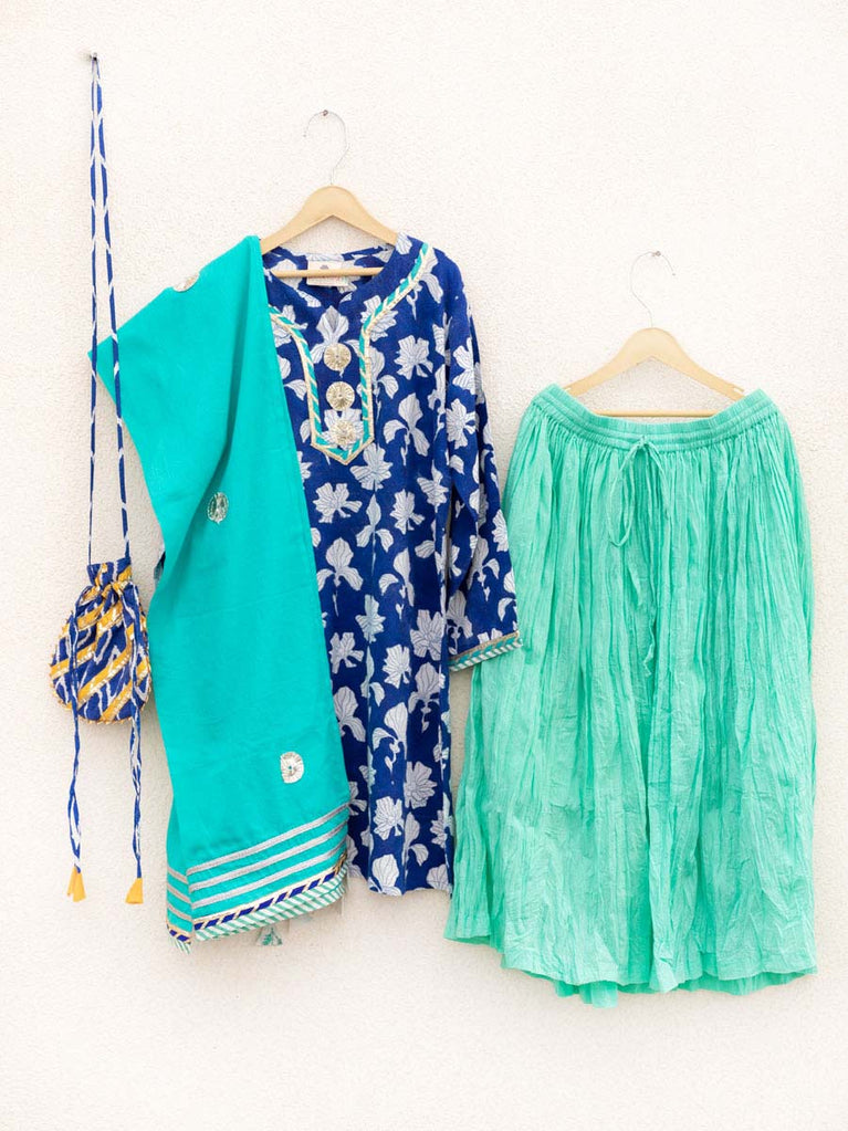 Set of 3 - Kashish Block Printed Cotton Lehanga