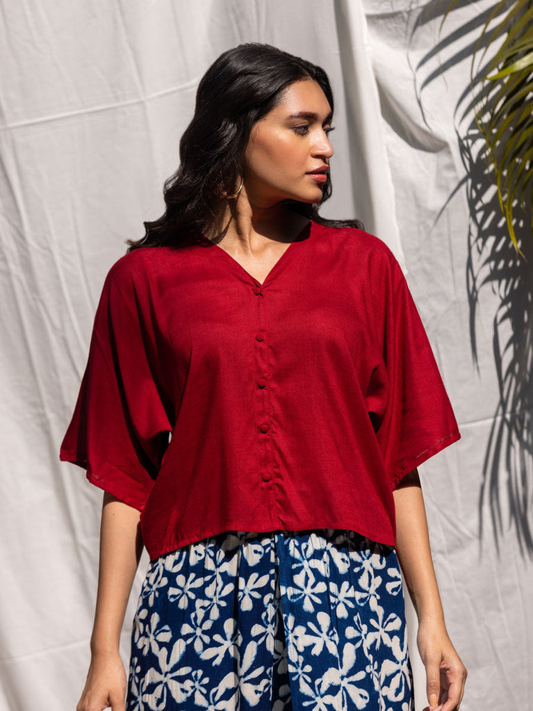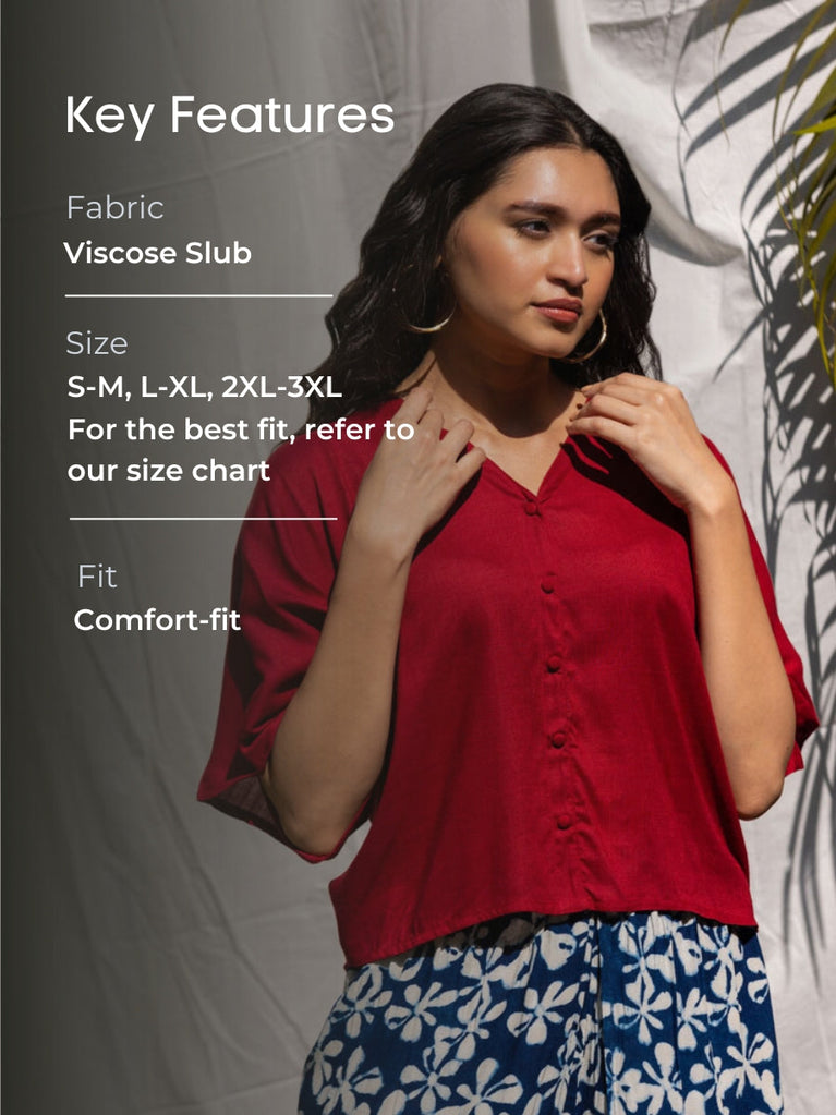Solid Red Slub Short Top