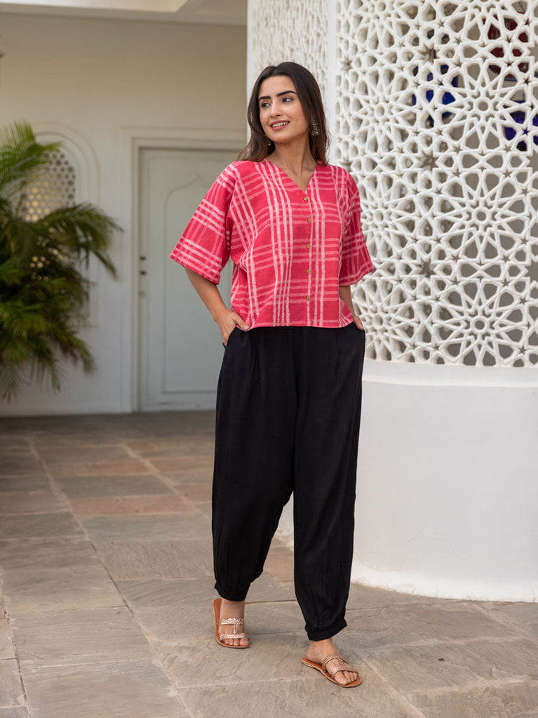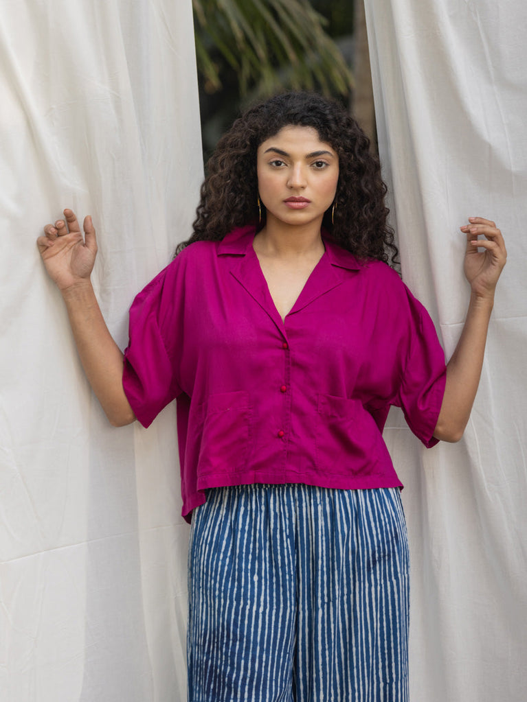 Solid Pink Modal Shirt Top - Comfort fit