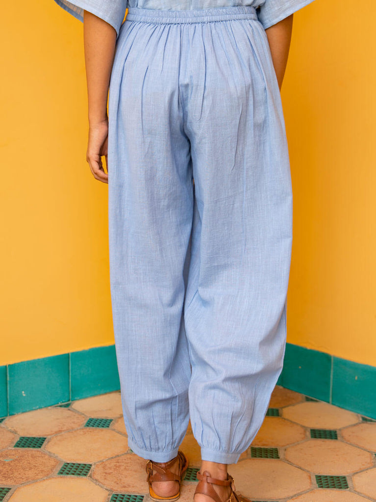 Solid Grey Slub Lantern Pants