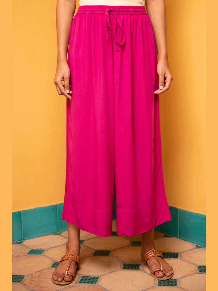 Solid Fuchsia Pink Modal Palazzo Pants