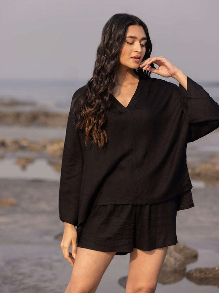 Solid Black Slub Shirt