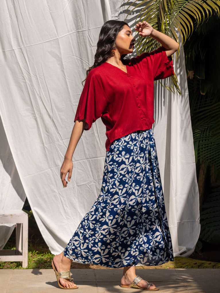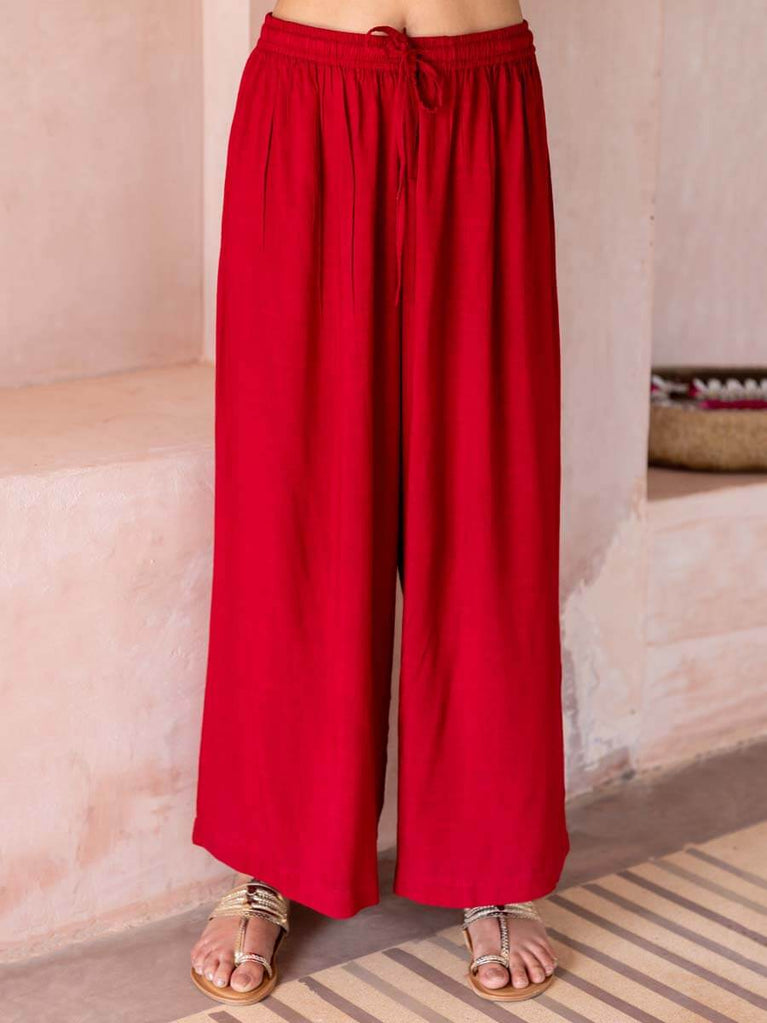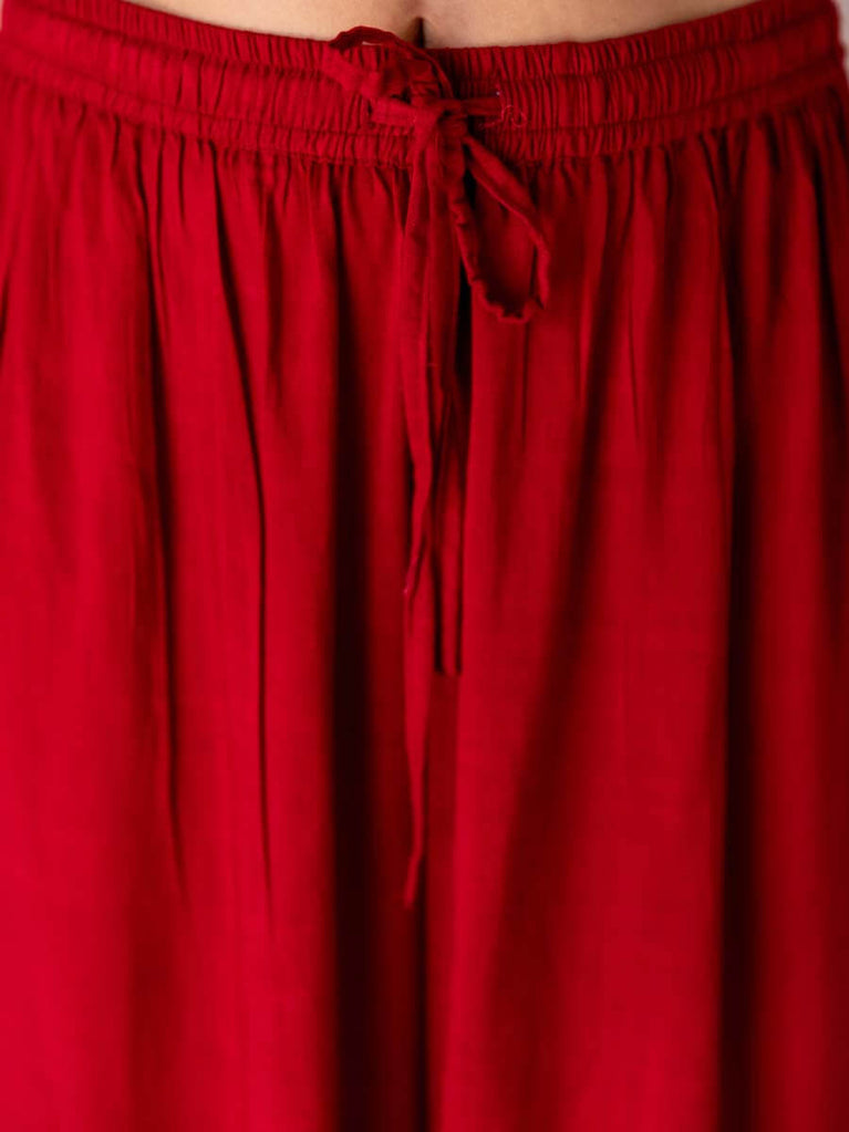 Solid Red Slub Palazzo Pants